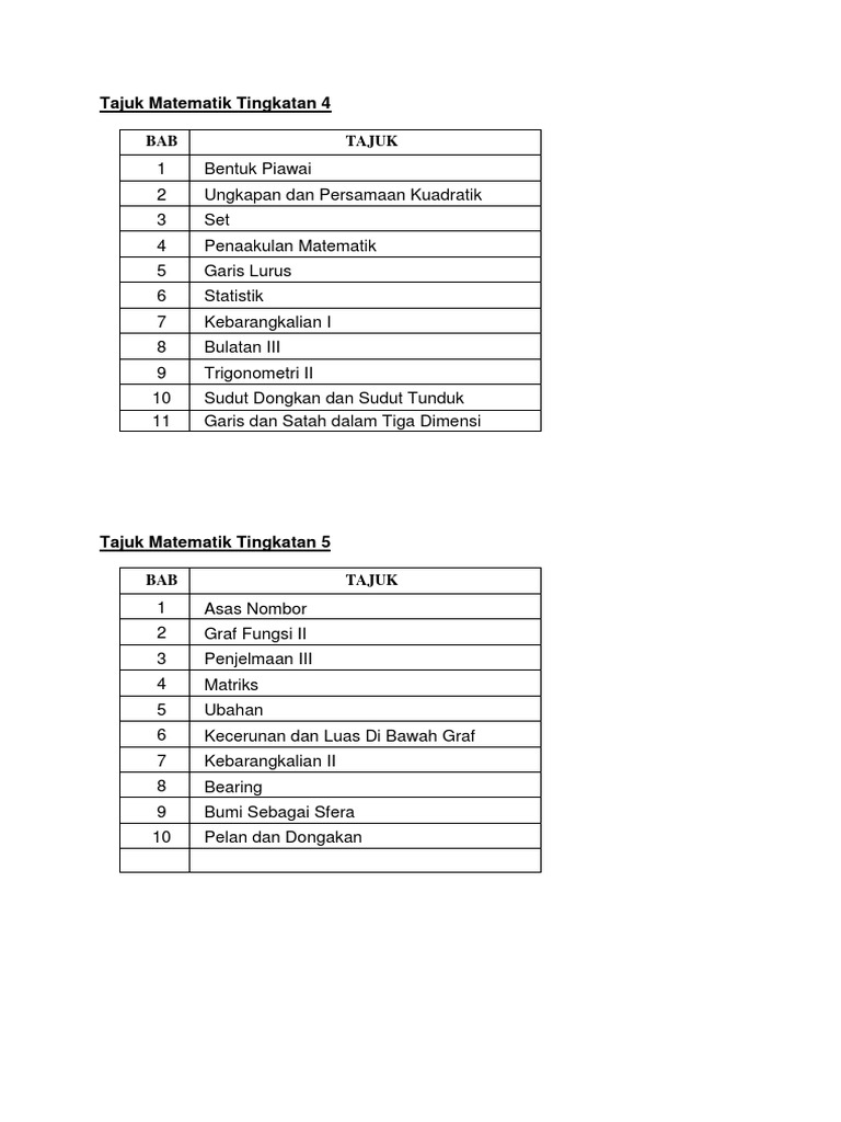 Tajuk Matematik Tingkatan 4 Dan 5 Pdf